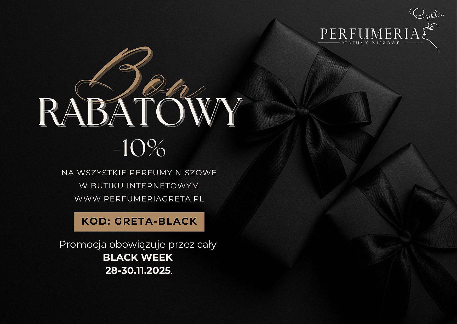 Wystarczy wpisać kod GRETA-BLACK przy zakupie w naszym butiku internetowym www.perfumeriagreta.pl.