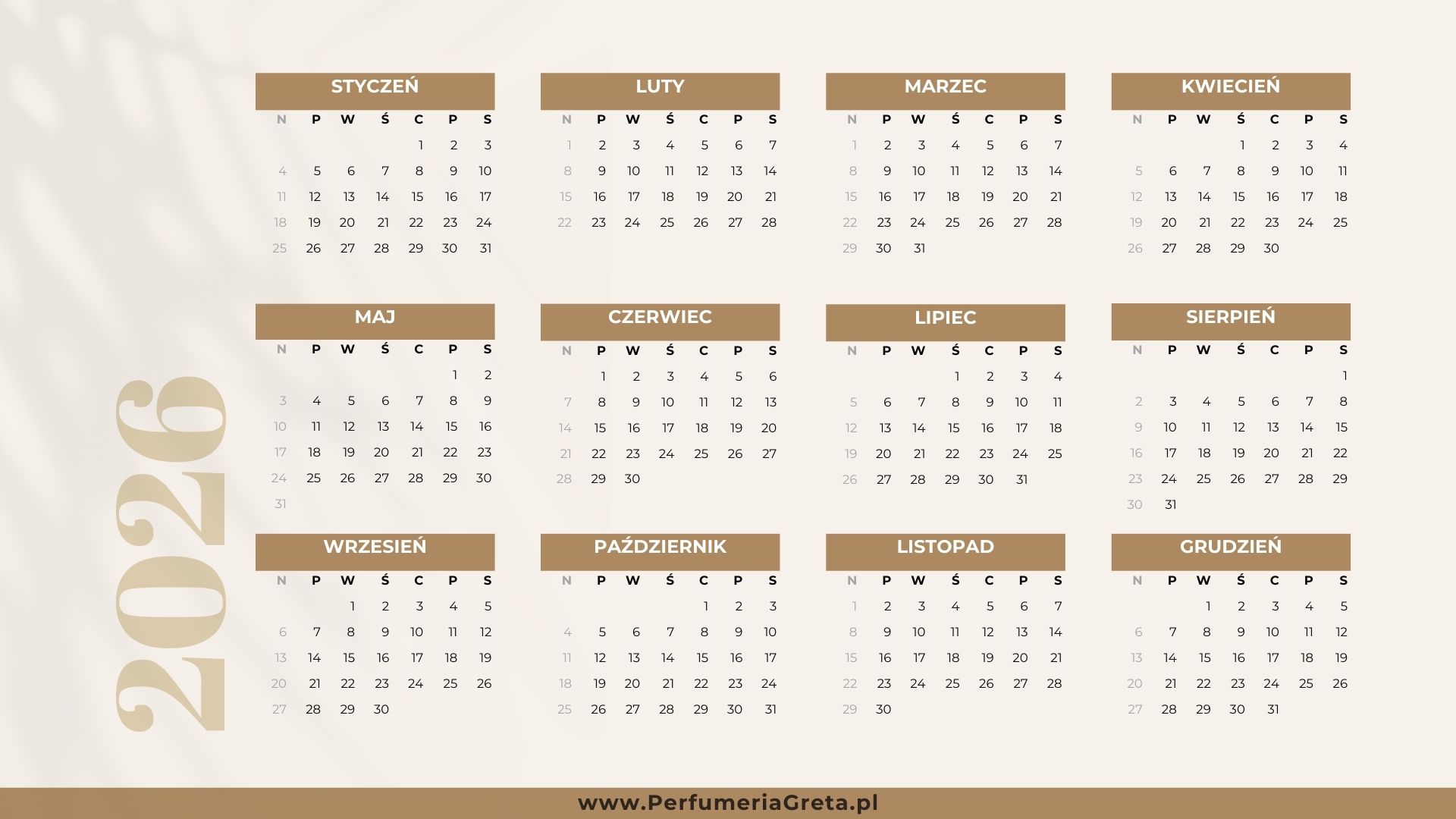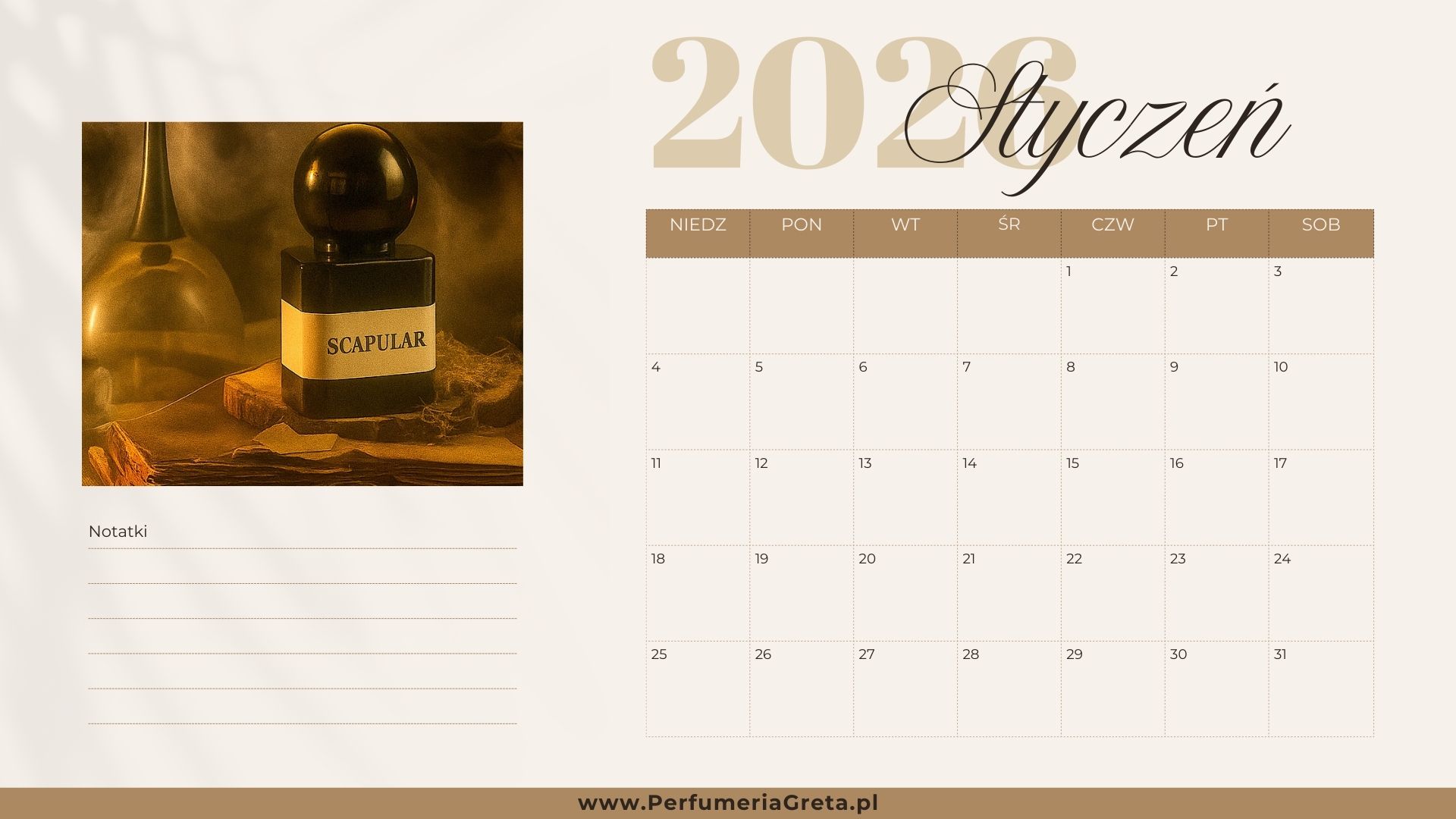 Perfumeryjny kalendarz 2026 – planuj rok z Perfumerią Greta